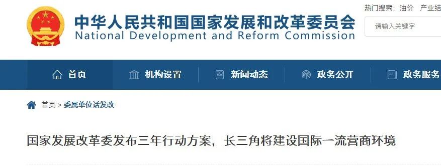 4.國(guó)家發(fā)展改革委印發(fā)《長(zhǎng)三角國(guó)際一流營(yíng)商環(huán)境建設(shè)三年行動(dòng)方案》
