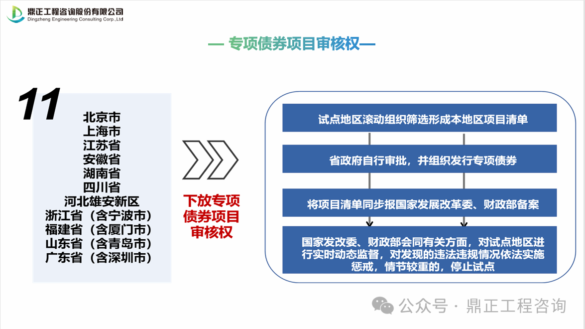 地方政府專項債券項目“自審自發”試點地區名單:北京市、上海市、江蘇省、浙江省(含寧波市)、安徽省、福建?。ê瑥B門市)、山東省(含青島市)、湖南省、廣東?。ê钲谑校?、四川省、河北雄安新區等11個省市。