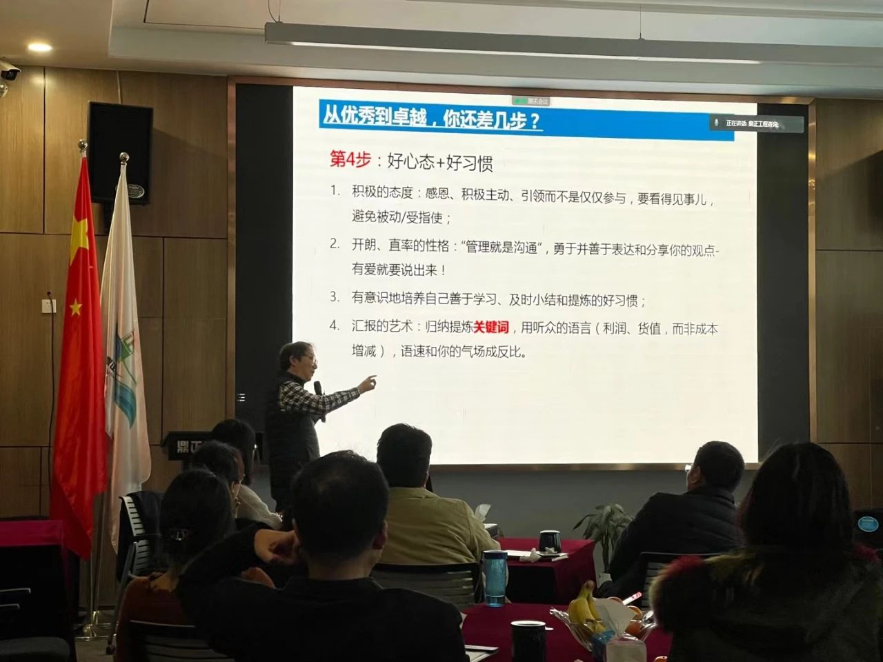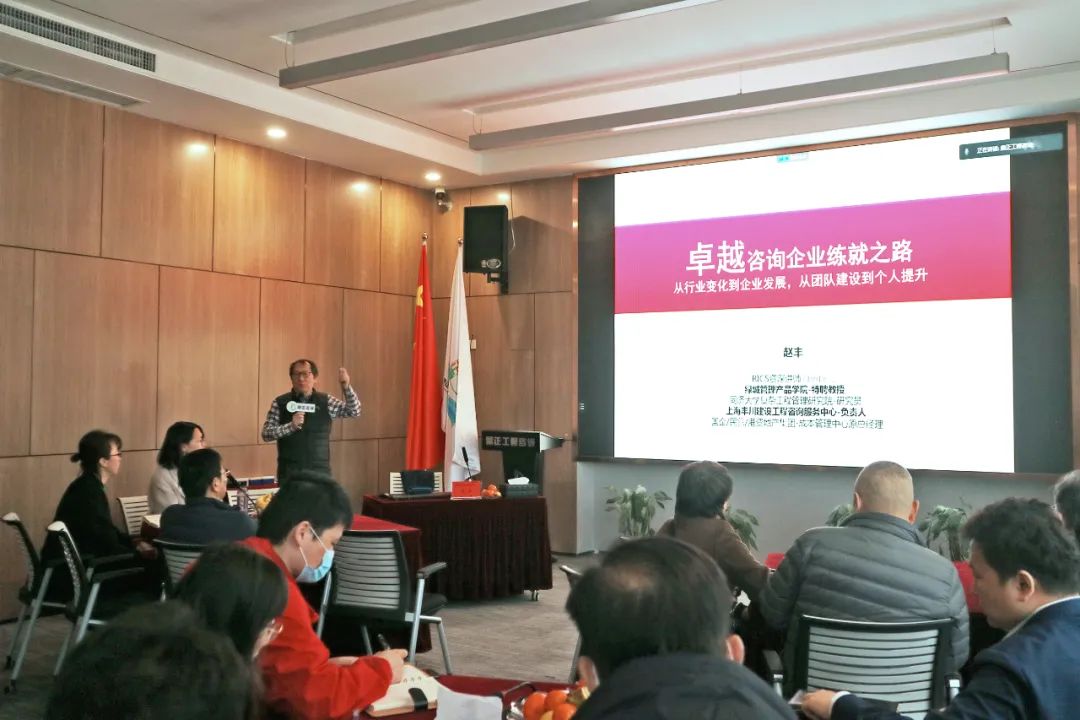 下午13:30,趙豐老師的《卓越造價咨詢企業(yè)練就之路》專題授課在鼎正珞珈多功能廳正式開講,此次授課采用線上線下相結(jié)合的方式同步開啟,鼎正總部、各分公司以及駐扎在項目一線的同事同步參與學(xué)習(xí)。