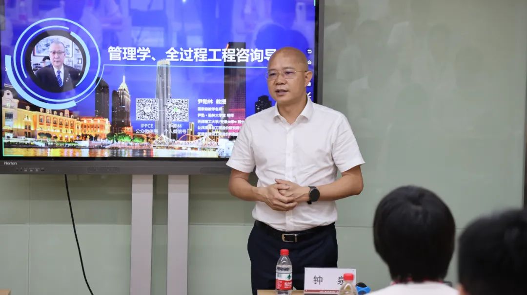 鐘泉董事長為尹教授到來授課表示熱烈的歡迎與崇高的敬意。鐘泉董事長從1997年開始就跟隨尹教授學習,在作為造價工程師以至成為一家工程咨詢企業領導者的職業道路上,一直都深受尹教授思想影響。他是尹教授多年來在全國各地講課的忠實聽眾,深為尹教授的高深思想與授課魅力折服,他表示,能夠邀請尹教授為工程咨詢行業的“未來之星”授課,是一件代表著行業發展“薪火相傳”的大事情。