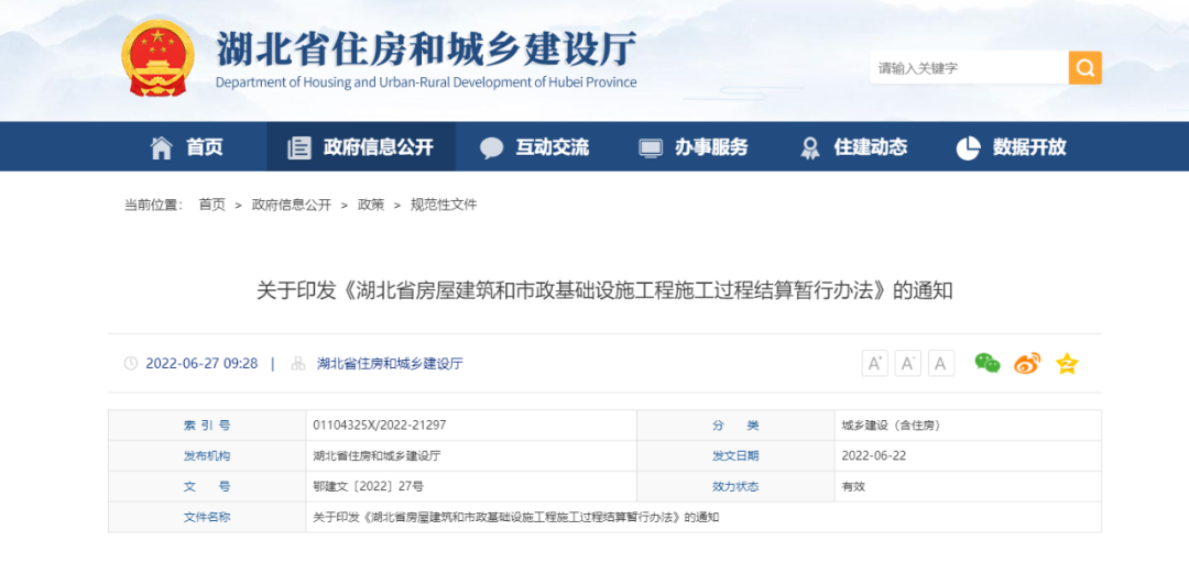 近日,湖北省住建廳聯合湖北省財政廳、湖北省公共資源交易監督管理局印發了《湖北省房屋建筑和市政基礎設施工程施工過程結算暫行辦法》(以下簡稱《暫行辦法》),截至目前,全國已有近30省市區發文明確施工過程結算。