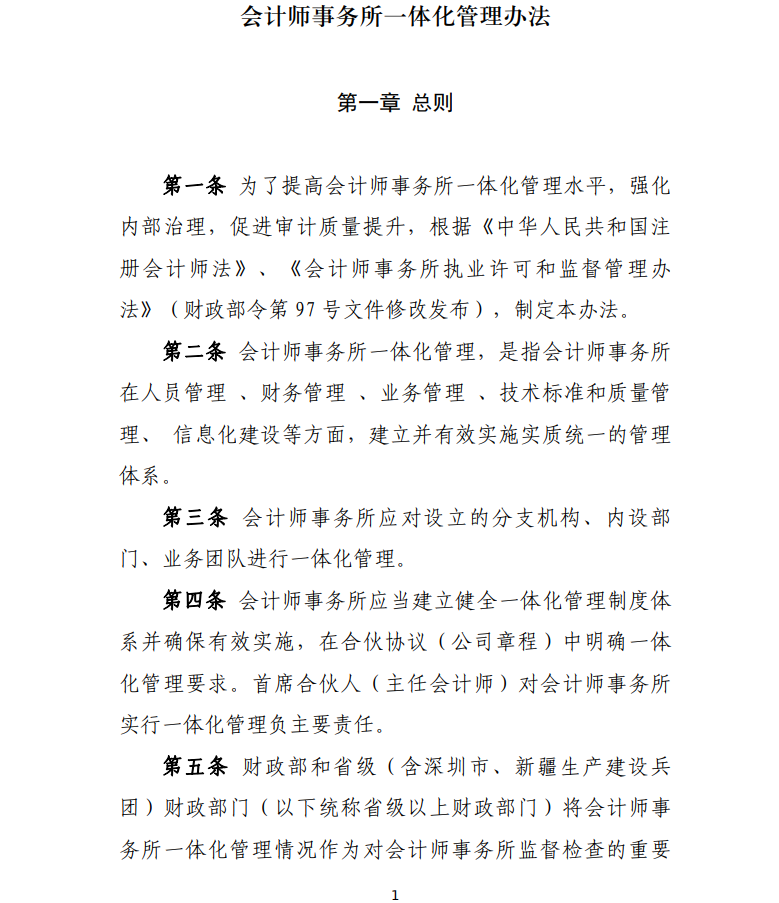 附件:會計(jì)師事務(wù)所一體化管理辦法