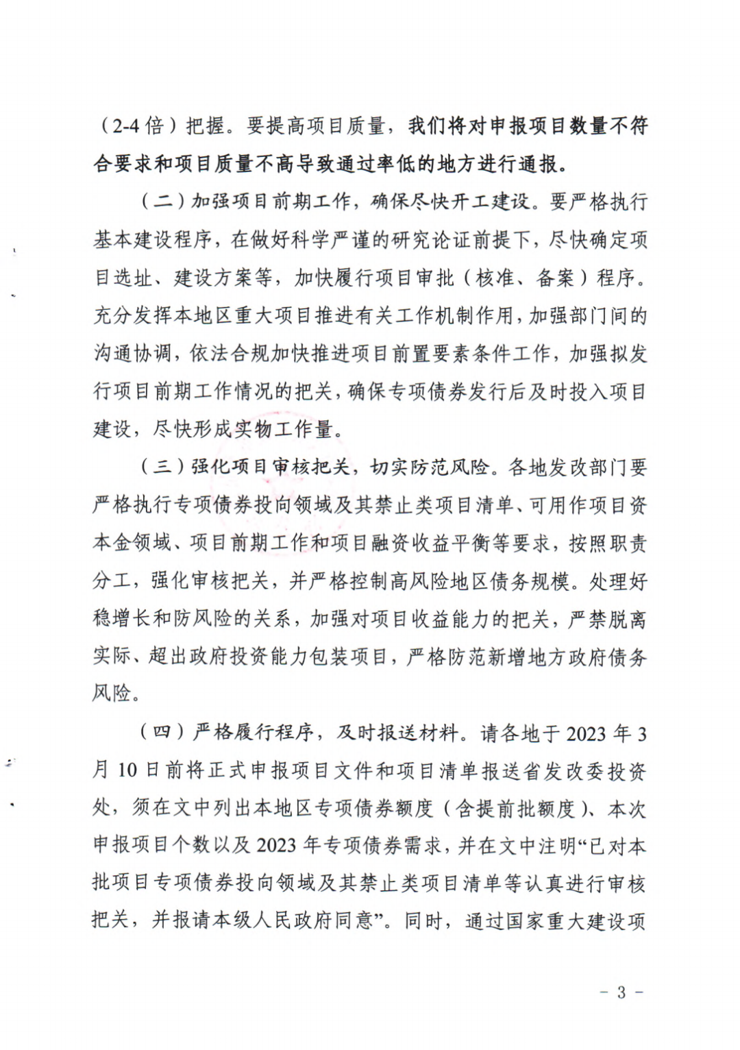 在2023 年 3月 10日前將正式申報項目文件和項目清單報送省發改委投資處。