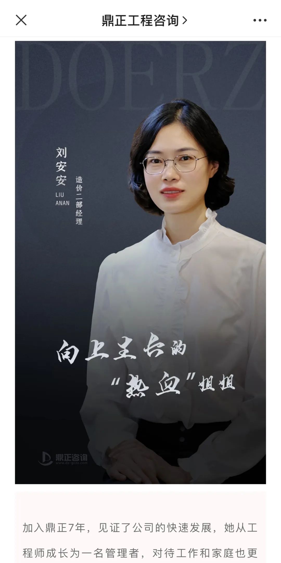 “鼎正工程咨詢”微信公眾號,既是公司品牌傳播的窗口,也是同事們互動交流的平臺。從2020年起,微信公眾號便相繼推出了“我們眼中優秀的你”、“鼎正故事”、“榜樣人物”、“鼎正人物”等人文宣傳板塊,通過深度挖掘工程師的成長故事,全方位展示鼎正人的企業文化,為讀者奉上一道道關于奮斗的精神大餐。