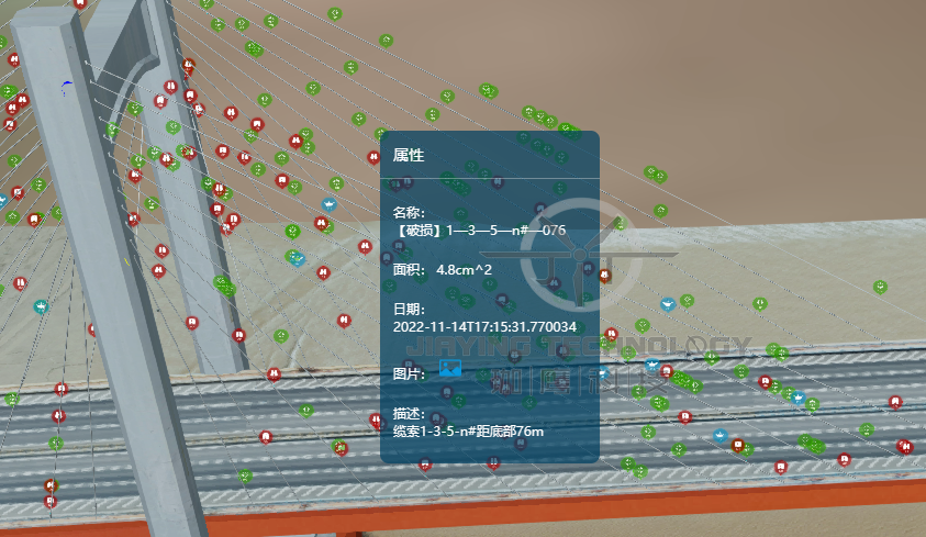 根據(jù)拍攝的高清圖像重建橋梁三維模型,并定量標(biāo)示各類缺陷的位置,并且搭建獨(dú)立的大數(shù)據(jù)云平臺(tái),實(shí)現(xiàn)橋梁缺陷與病害的可視化,對(duì)橋梁?jiǎn)栴}進(jìn)行三維立體化復(fù)現(xiàn),為橋梁安全運(yùn)行提供數(shù)據(jù)支撐。