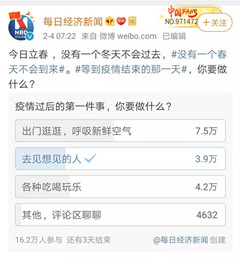 今天,2020年2月14日,一個特殊的情人節(jié)!想從一個近期的網(wǎng)絡投票說起:“疫情過后的第一件事,你要做什么?”