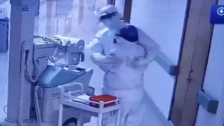 一次性的防護服下,根本認不出防護服里誰是誰。浙江紹興市人民醫(yī)院一對多日未見的醫(yī)生夫妻,在隔離病房前相遇,都沒認出對方。